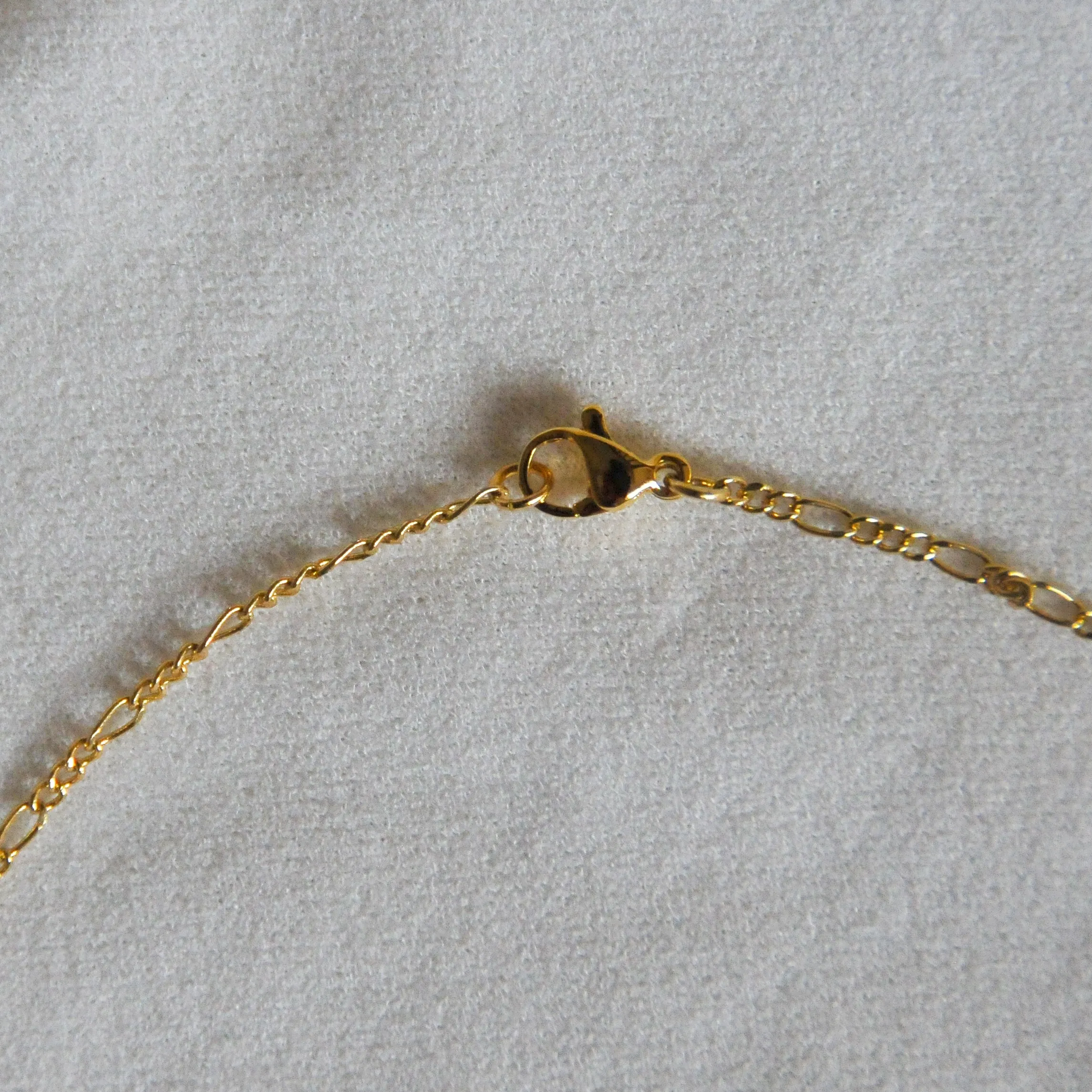 This cubic zirconia choker has a rather regal feel. A beautiful selection of teadrop shaped cubic zirconia set on a dainty 18k gold plated figaro chain.