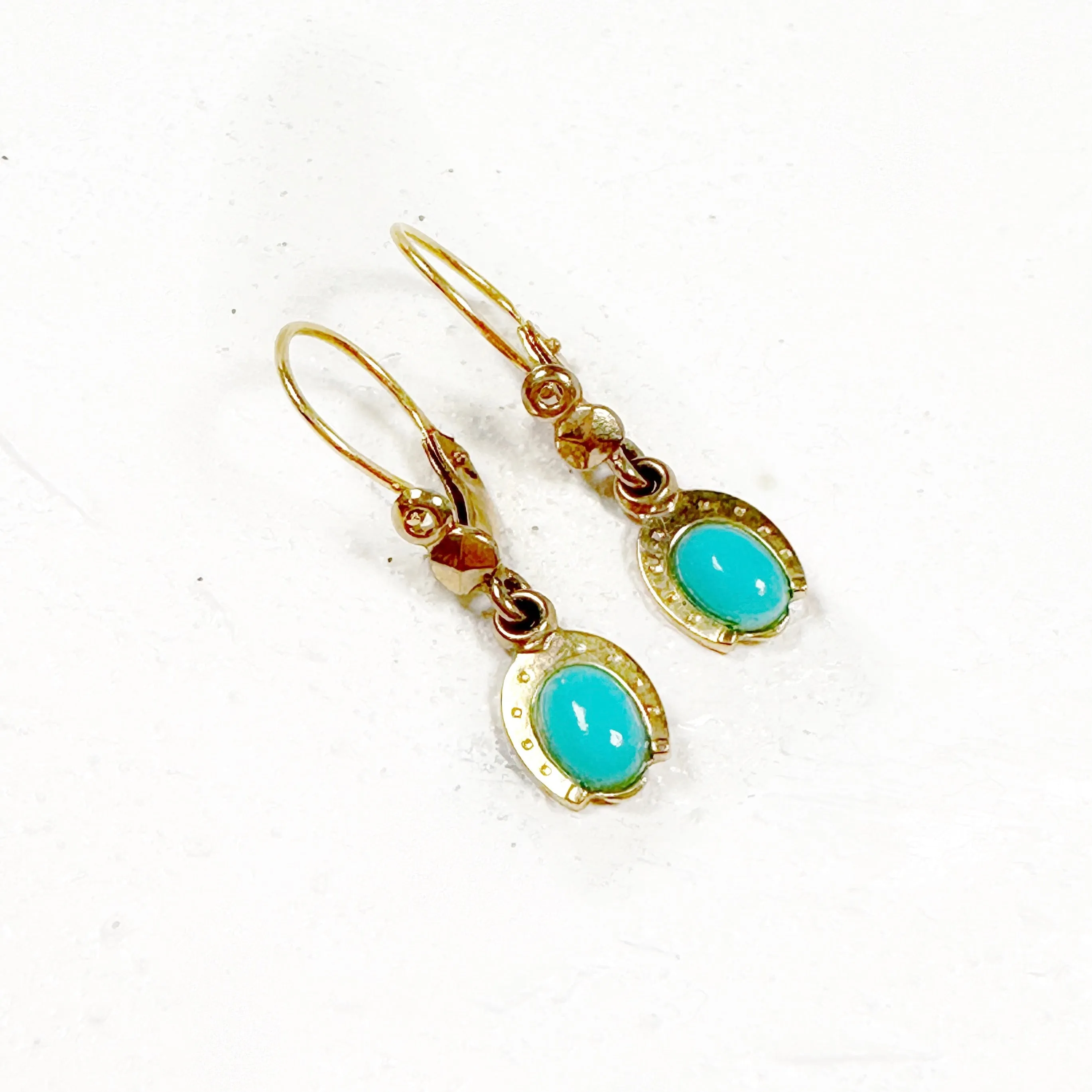 1960's 14k gold horseshoes accented with genuine turquoise on 14k gold lever backs